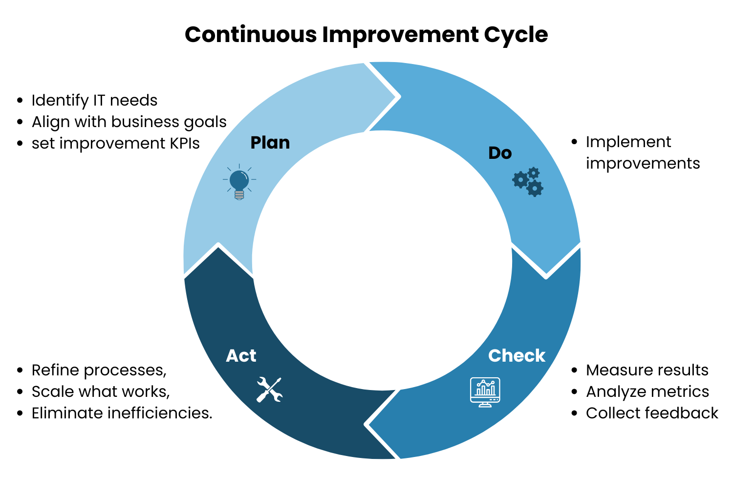 With regular technology reviews, IT roadmapping, and budgeting guidance, we ensure that your IT strategy stays aligned with your business objectives. Meanwhile, your internal team can focus on core business functions instead of day-to-day troubleshooting, boosting overall efficiency and innovation.